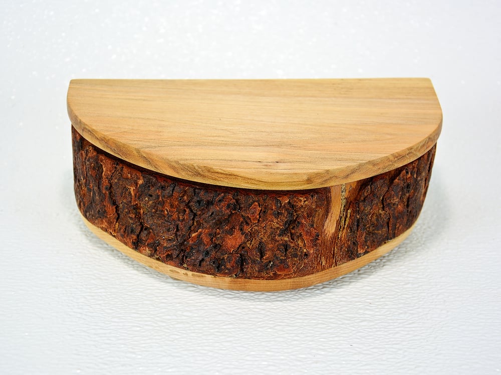 Cherry Wood Rustic Keepsake Box, Half Circle Jewelry Box, Rustic Cherry Bark Box