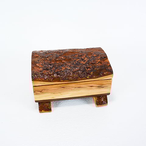 Cherry Wood with Walnut Bottom Rustic Keepsake Box, Cherry Bark wood lid, Rustic Home Decor