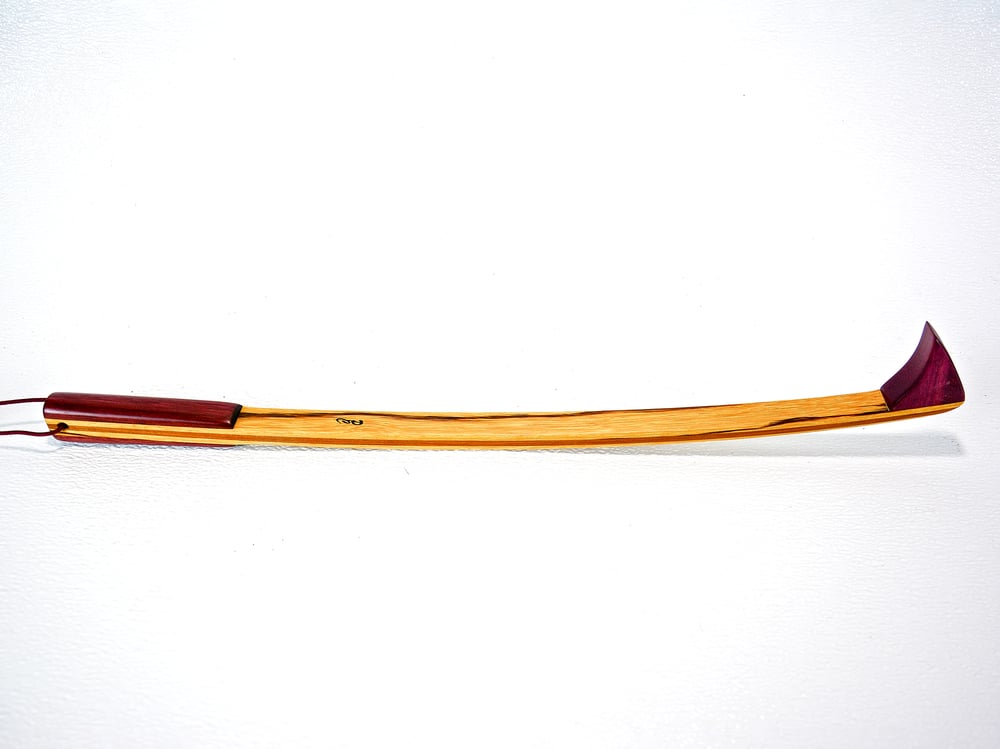 Handcrafted Wooden Back Scratcher, Exotic Wood Purple Heart and Tiger Wood with Cherry Accent