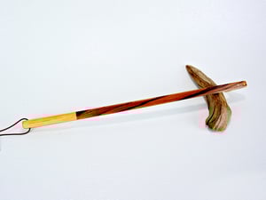 This handcrafted wooden backstratcher is made of the exotic wood of Bocote. We used Maple as an accent wood for the tip, as well as an inlay between the Bocote. This handcrafted wooden back scratcher is as functional as it is handsome! We have our PC on the inside spine so you know you have an athentic handmade creation by us! We finished it off with a natural stain with multiple sprays and sanding with a satin finish of polyurethane.