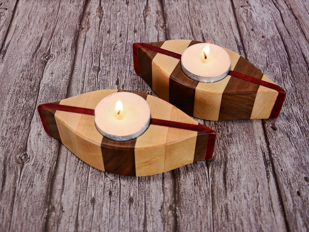 Set of Tea Light Wooden Candle Holders with tea lights, Walnut, Maple and Padauk Wood Home Decor