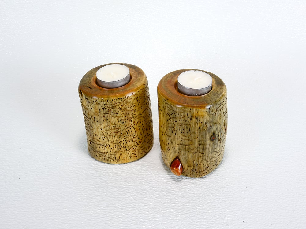 You will receive two (2) handmade wooden tea light candle holders and two (2) tealights.