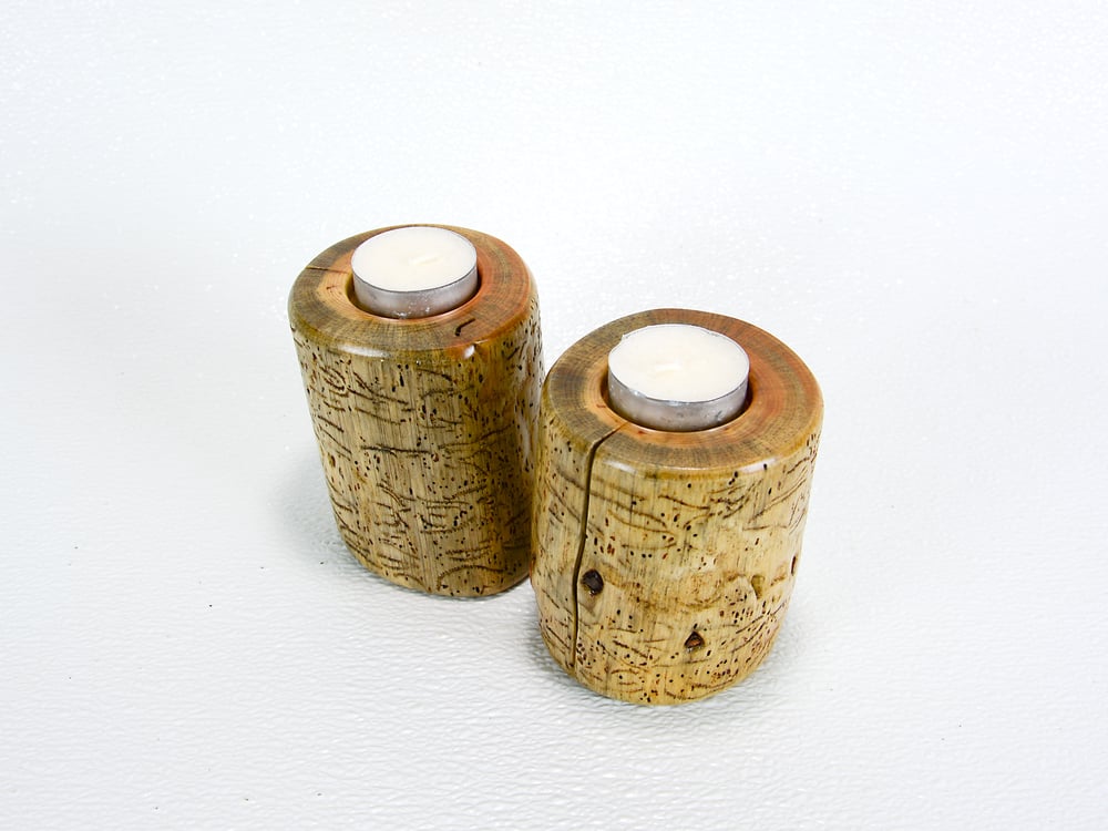Set ot tea light Wooden Candle Holders including the tea lights, Two Tea Light holders, Rustic