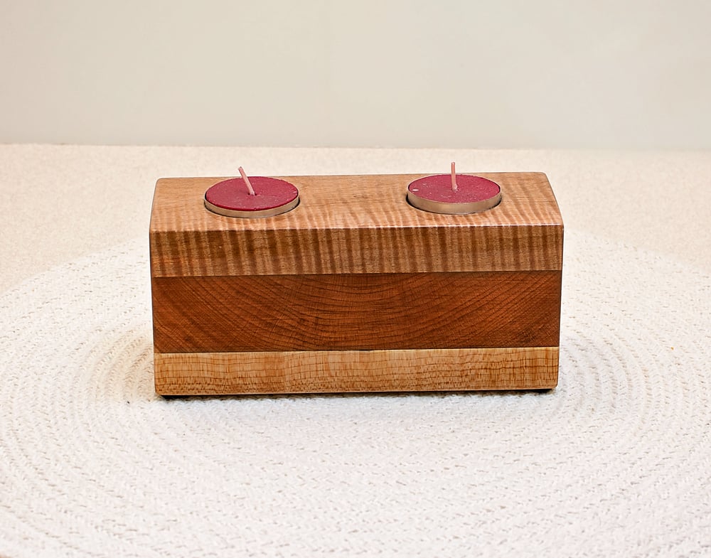 Tea Light Wood Candle Holder made of Tiger Maple and Walnut, Candle Home Decor