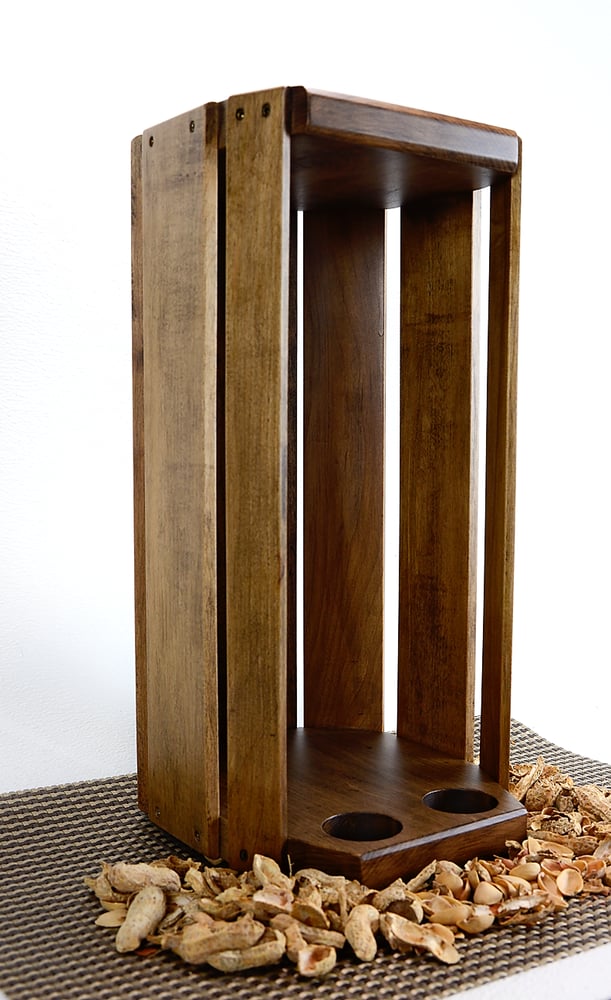 Whiskey Shack. Handcrafted with Maple creating the perfect Whiskey Bourbon Countertop Caddy with two glass shot glasses. The glass shot glasses each say "Cheers Y'All".